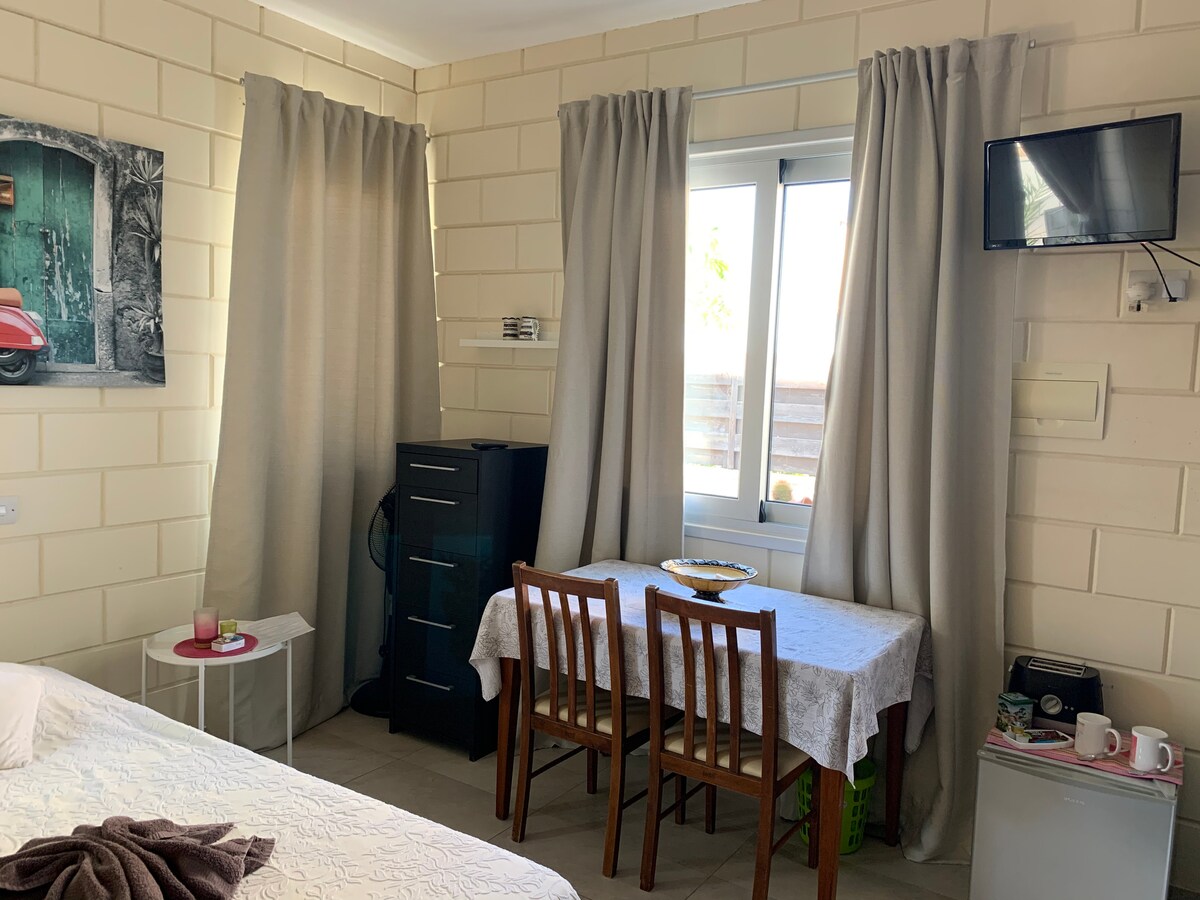 Room is nestled in the foothills of Kyrenia mountains which overlooks a local vineyard. Rooms have access to small gardens in front of them and the property features an infinity swimming pool. It offers AC and self-catered rooms with free Wi-Fi, with balconies overlooking the Mediterranean Sea. Room has a double bed and a private bathroom. Featuring a kitchenette with fridge, cooking hobs, kettle, and toaster. Satellite TV , NETFLIX and include a seating area for breakfast, lunch, or dinner.