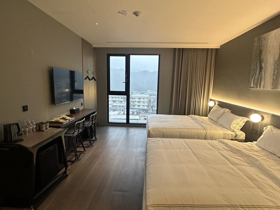 “To play the simplest change of colors” The refined and minimal twin-bed room presents a concise sense of elegance and manifests the subject’s style specialty with the use of different materials, designing the plain white vision to penetrate the whole details of inner and outer space of SWIIO. We select daily supplies like bathrobes and slippers elaborately, which aimed at building up a relaxing residence for travelers to rest well with the standard of high quality.