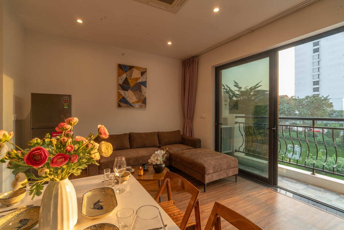 Welcome to Aurelia Apartments – a stylish and peaceful living space near West Lake (Tay Ho). Our cozy, modern apartment is filled with natural light, making it an ideal choice for solo travelers, couples, or business trips in Hanoi. From Aurelia Apartments, it’s just 500 m to West Lake, 1 km to Lotte Mall Tay Ho, and conveniently located on the main route to the airport, offering easy access while still providing a green, relaxing environment.