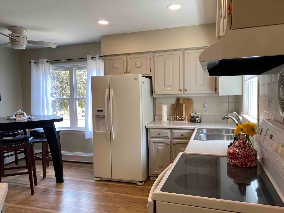 This recently renovated two bedroom apartment is located one block off of Market St and is minutes from Bucknell. The apartment occupies the second floor of our historic Lewisburg home. Full tile shower, beautiful brick accent wall, refinished floors, concrete kitchen countertops, W/D, king + queen beds. Private access via alley at front of house, parking + add'l access through backyard. Street parking also available. We are excited to host you! License number LB22ST015