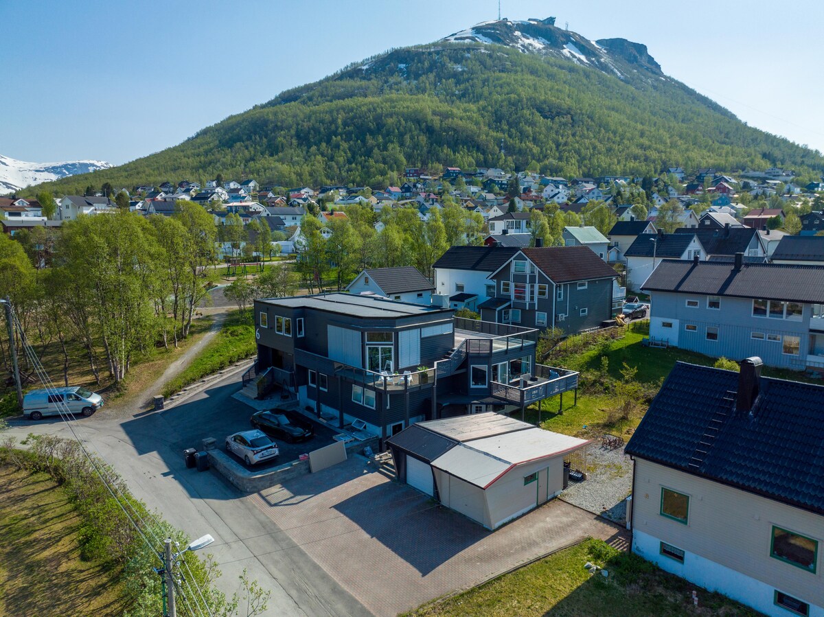 3-room new apartment of 90 sqm with a view of the fjord, the Arctic cathedral, the mountaintop restaurant and the bridge between the mainland and the island. Central location between Tromsø city and UNN / UIT. Walking distance to Tromso city center and good bus connections. If you are traveling with a small child, we can offer you a cot, high chair, potty, toys and a stroller. (required in advance) Everything you need for your comfortable stay. ❤️😊