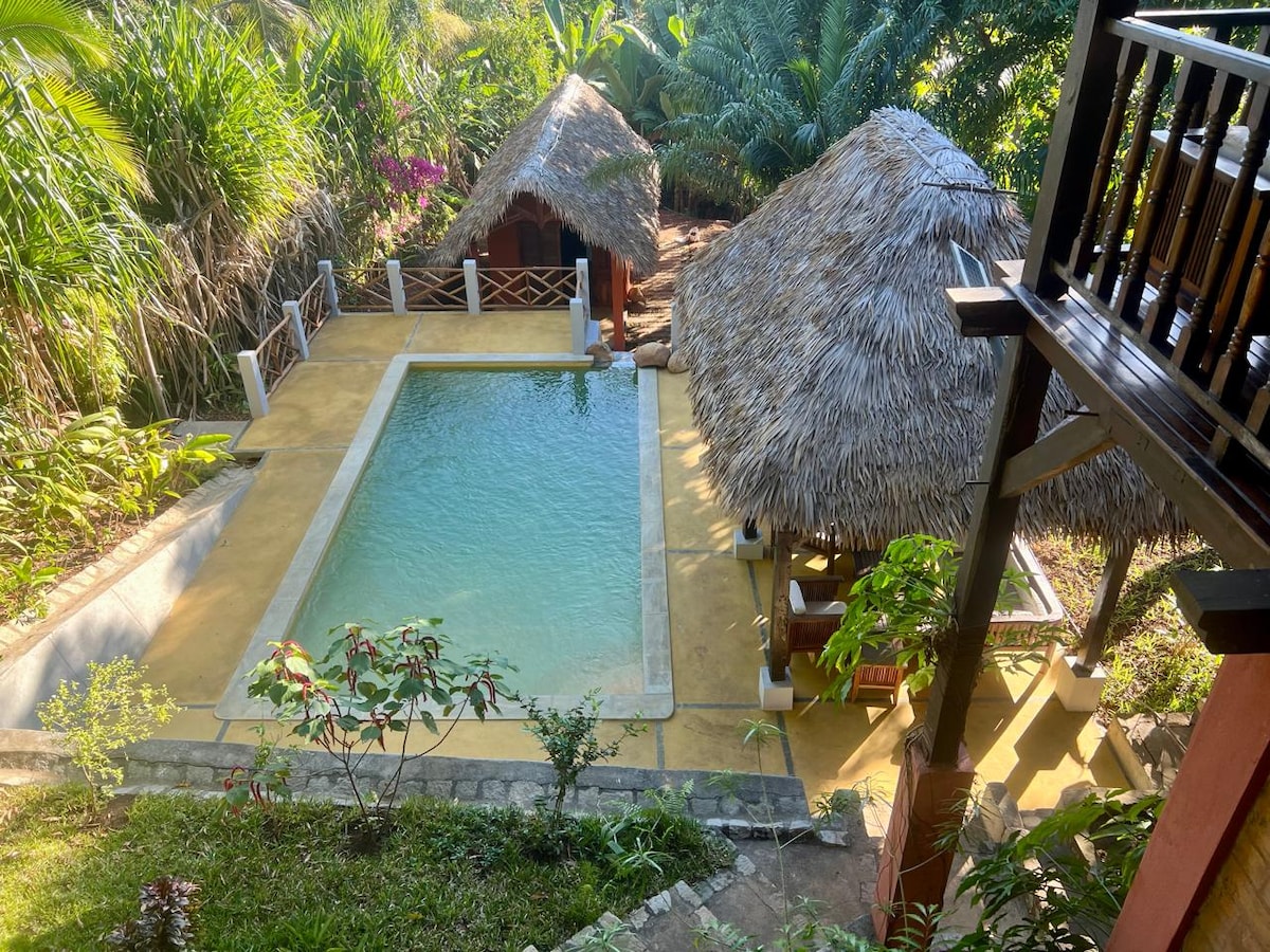 The entire villa with all the bedrooms and the bungalow for a private and spacious stay in Nosy Be. Access to the garden, pool and all services: - Breakfast included in the rate - Housekeeper, evening meal upon request - Activities organized on request (boat trips) - Airport shuttle and taxi - Private parking Ideal for groups or families looking for maximum privacy and comfort close to all amenities on Nosy Bé.
