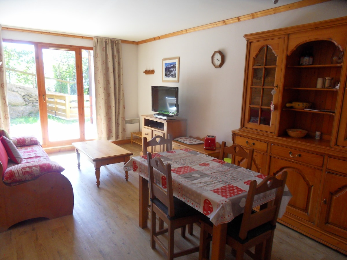 Bernadette and Alain offer a 35 m² fully renovated apartment, 2 rooms, kitchen on the ground floor of our cottage with private parking. - In the bedroom: 1 bed 160 x 200 or 2 beds 80 x 200. Please let us know your preference before you check in. - Towels and bedding are included in the rental price. - CLEANING: Cleaning is to be done before your departure. - On site it is possible to choose the cleaning fee option at €20 Ski slopes 3/4 km away, hiking, body of water