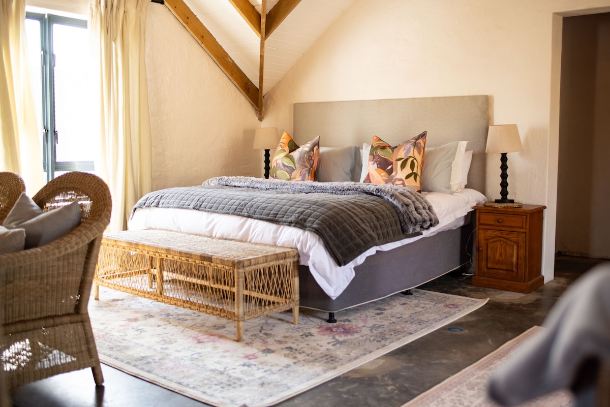 This beautifully appointed room offers a peaceful haven within Gowrie Farm Estate in the KZN Midlands. With expansive views of lush green fields, enjoy magical sunsets or watch the mist roll in from the comfort of your bed. The Meadows provides a perfect blend of modern comfort and natural tranquility for those looking for a quiet escape or a comfortable base to explore the area. For more info on things to do in the area visit the Midlands Meander Online Guide.