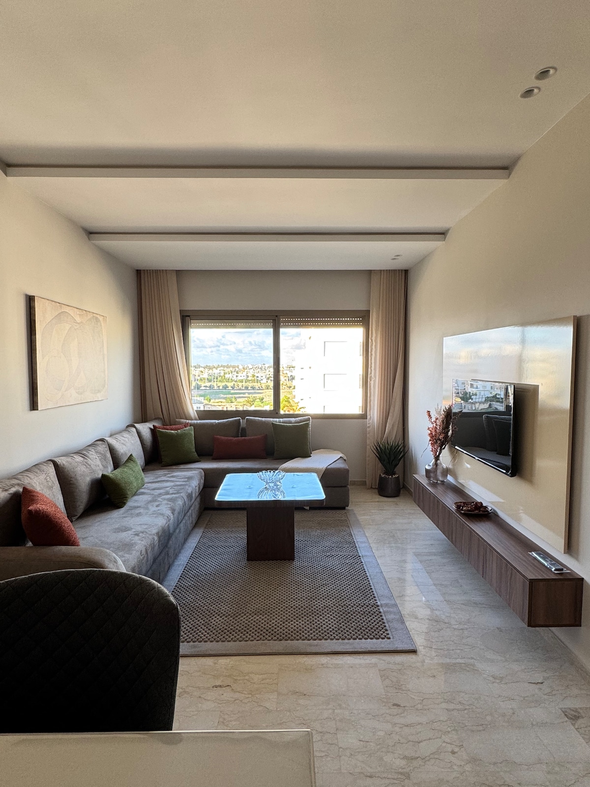 Spacious 3 bedroom apartment in Nouaceur, five minutes from Casablanca Airport. Quiet and secure residence with high speed internet and all utilities included. Calm neighborhood with shops right downstairs. Personal chef and private driver available on request. Perfect for families or business trips, offering comfort, privacy, and fast access to the city.