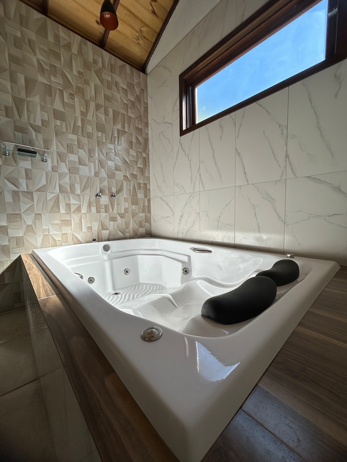 Charming cabin in Nova Friburgo. Accommodates up to 2 guests, breakfast, with mezzanine, bathroom, outdoor heated spa, panoramic deck and garden fireplace. Ideal for couples looking for comfort, nature and tranquility in the mountains. The cabin was designed for comfort and romance, with every detail inviting relaxation and connection with nature. The mild climate of the mountains makes the stay even more cozy at any time of the year. No Wi-Fi, 4G available.