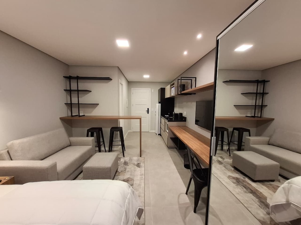 Space prepared with all the care and affection to welcome our guests! New, safe condominium with a great location, as well as modern and comfortable, it has a parking space for your vehicle. Ideal for short and long stays. Custom-made furniture, new appliances, comfortable bed, smart TV, hot and cold air-conditioning, everything designed to make you feel right at home and want to come back again and again! 4 km Centro /2 km Sthil /11 km Fenac /15 km Expointer /70 km Gramado /30 km Velopark /14 km NH /29 km Airport.