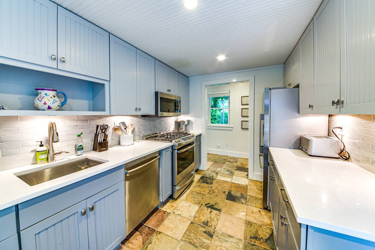 The Surf Farmhouse is a beach oasis only 1.5 hours from NYC! Classic coastal living at its best, this sundrenched house has an open floor plan, 3/4 of an acre and tons of family-friendly amenities. The home is a quick 7-minute drive to the nearest beach, and has access to more than 10 area beaches! Enjoy the quiet charm of the Hamptons—close to restaurants, wineries, farm stands, family farms, and amazing ocean/bay beaches. Designed for comfort and style, we can't wait to have you visit!
