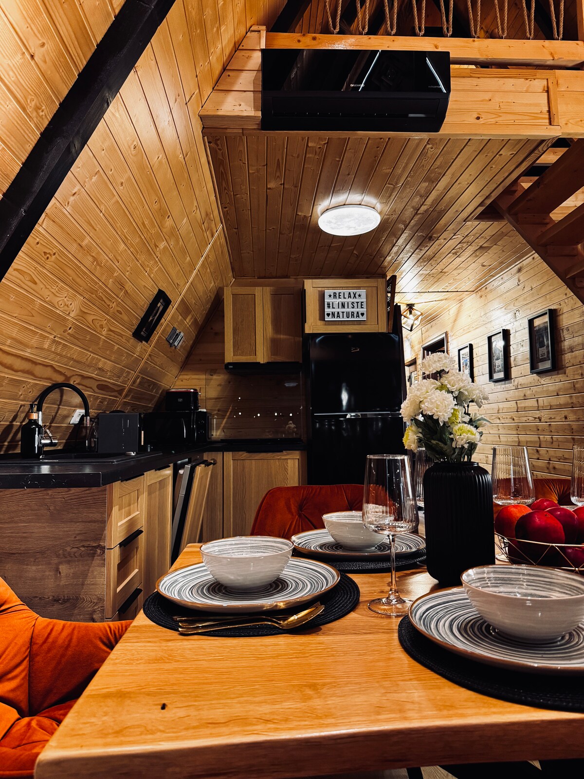 Our Piece of Dream was designed to offer not just accommodation, but a truly unique experience. Staying here feels like living in a cozy wood cabin, with the breathtaking view of a mountain retreat and the intimacy of the forest, blending rustic charm with modern convenience. Guests are welcome to play with our Bernese Mountain Dogs, and families with children will also find a safe and fun playground space to enjoy. Our complex includes two houses: Piece of Heaven and Piece of Dream.