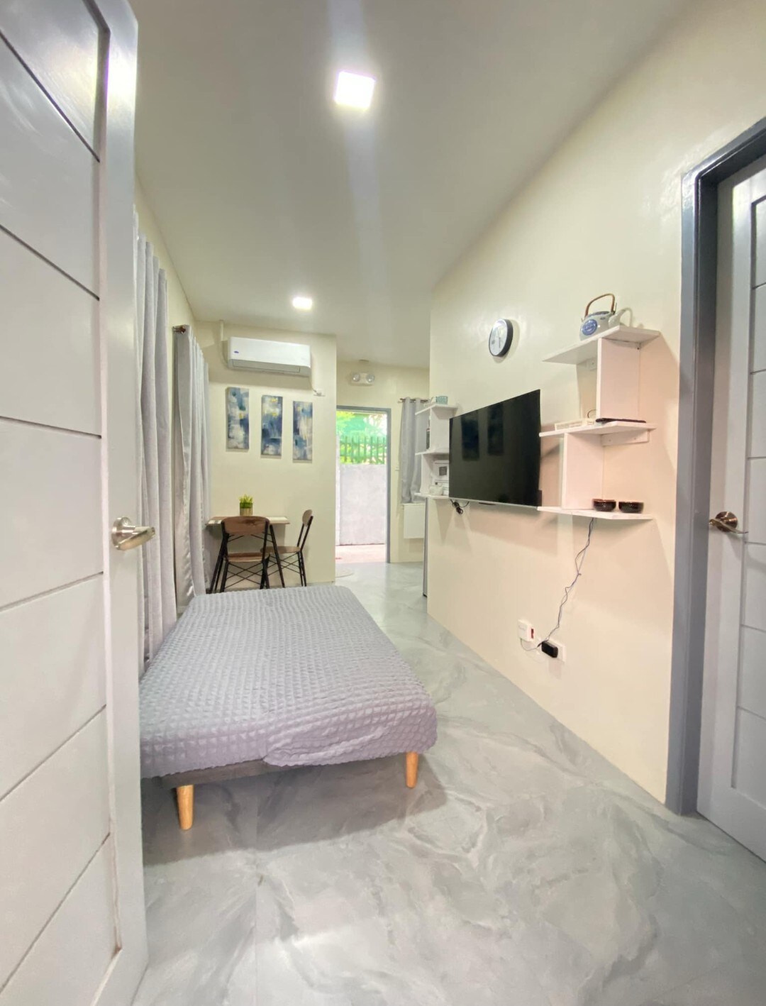Enjoy and relax in this calm,homey and stylish space. The property is fenced and gated. The whole unit including Living Room, Dining Area, Kitchen, Bedroom,BathRoom and Laundry Area is your private home for the duration of your stay. Greatly recommended for remote working due to its high speed internet with built-in working station. Easy road access and near Marquee Mall, Alfamart, Pure Gold Supermarket and Restaurants. With parking lot inside and outside the unit.