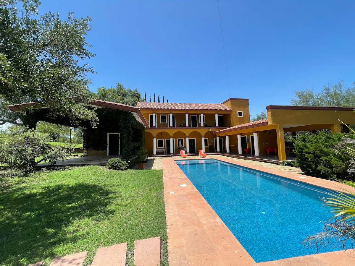 Exclusive country house surrounded by beautiful oaks, large gardens and mountain views. The house has 3 bedrooms, 2 bathrooms, a living room, dining room, terrace, and fully equipped kitchen. The property has a small pond that will make you feel like you're in a very special place. You can enjoy the pool, 2 outdoor bathrooms, a palapa, barbecue, trampoline, volleyball court, and mini soccer goals. It's the perfect place to take your family for an extraordinary weekend.
