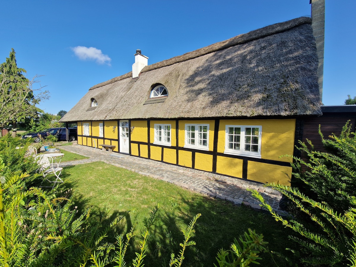 Our cottage is located in Gammelby on Bogø, and is a 225-year-old, very cozy former forge. Relax in the cozy courtyard, have a drink and watch the sunset on Skåningen, where you can also swim, take a walk in the beautiful beech forest and buy your breakfast, pizza and cinnamon rolls at Bogø Brød in the idyllic harbor, where you can also take the ferry Ida to Stubbekøbing. Take a trip to beautiful Møn or just relax on fine Bogø, which you can cycle around in 30 minutes