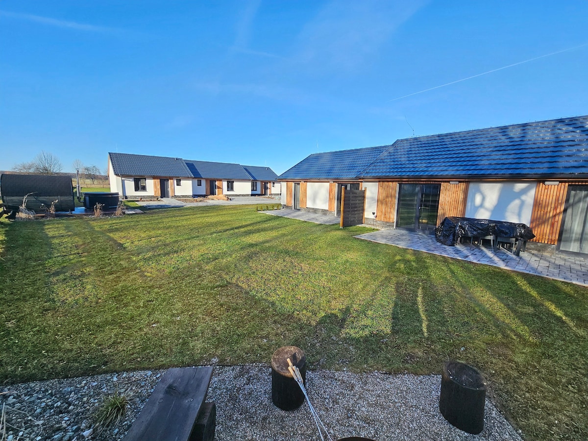 New fully equipped luxury apartments with a capacity of 6+2 in the heart of the Rychlebské Mountains. The resort is located near the Rychlebské trails, we recommend bringing bicycles. It includes its own wellness. Near the swimming pool, ponds and large lakes suitable for fishing and swimming. There are many attractive tourist attractions around. Suitable for families with children as well as for a group of friends.