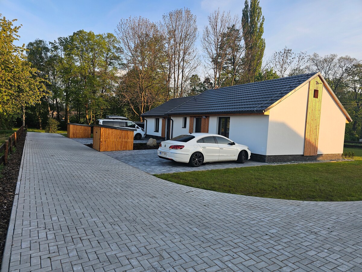 Komfortowo wyposażony Apartament (75 m2 ) z widokiem na las, położony w zacisznym zakątku Mosznej, kilka minut od słynącego ze swojej architektury Zamku. Bogate wyposażenie, 2 sypialnie, własny taras, kominek, i Jacuzzi pod gwiazdami.. Podgrzewana podłoga na całej powierzchni, komfortowa łazienka z otwartym prysznicem oraz deszczownicą dodaję szczyptę relaksu. Kuchnia i salon łączy się z tarasem z widokiem na las i bardzo duży ogród. Zapraszamy do rezerwacji! (P.S. Wir sprechen auch Deutsch!)