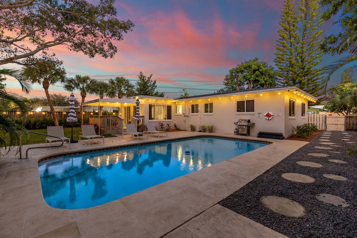 Welcome to Sunhouse, your private pool oasis in the perfect location: just 1 mile from the beach and the Pompano Beach Fishing Village! This house is the perfect Florida escape with everything you need plus the luxury of your own (BIG) heated pool! Relax in the backyard with comfy loungers, adirondack chairs, BBQ, and pool toys. Want to explore? Hop on our bikes for a quick 10-minute ride to one of Florida's best beaches, where you'll find great restaurants & shops!