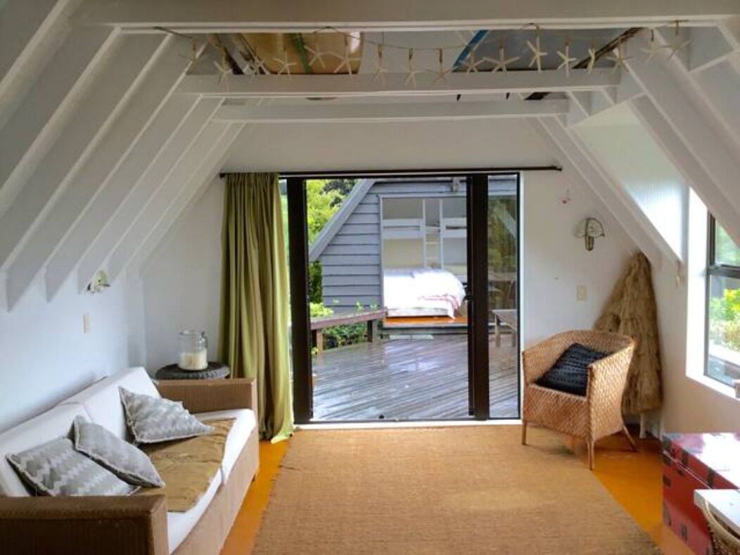 Seaperch will have you looking out over the Coromandel Harbour, while only 1.8kms from the township & 1.4kms to Long Bay beach. This 2 level cottage with native bush surrounds is perfect for couples to envelope themselves with the beauty of NZ land and sea. There is also art and books abound. Enjoy sea views from the comfort of the bed, lounge, kitchen & various parts of the section. A very private the garden backs onto a bush reserve. No smoking inside but outside is fine.