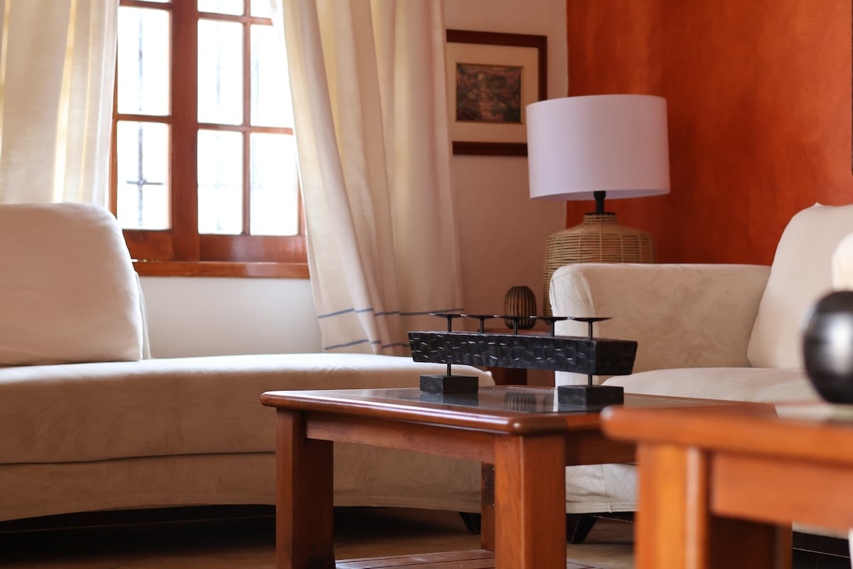 Carefully curated and beautifully designed. 5 min. walk to Zócalo. 12 min walk to Santo Domingo. The Colonial bones and original 1930s flooring are tastefully contrasted with mid century furnishings. Artisanal elements are subtlety featured though out. Comfortable interiors and exterior spaces allow you to gather or find privacy for yourself. The house features a soaking pool with hydro jets in the upstairs terrace Cleaning service on Monday, Wednesday and Friday is included.