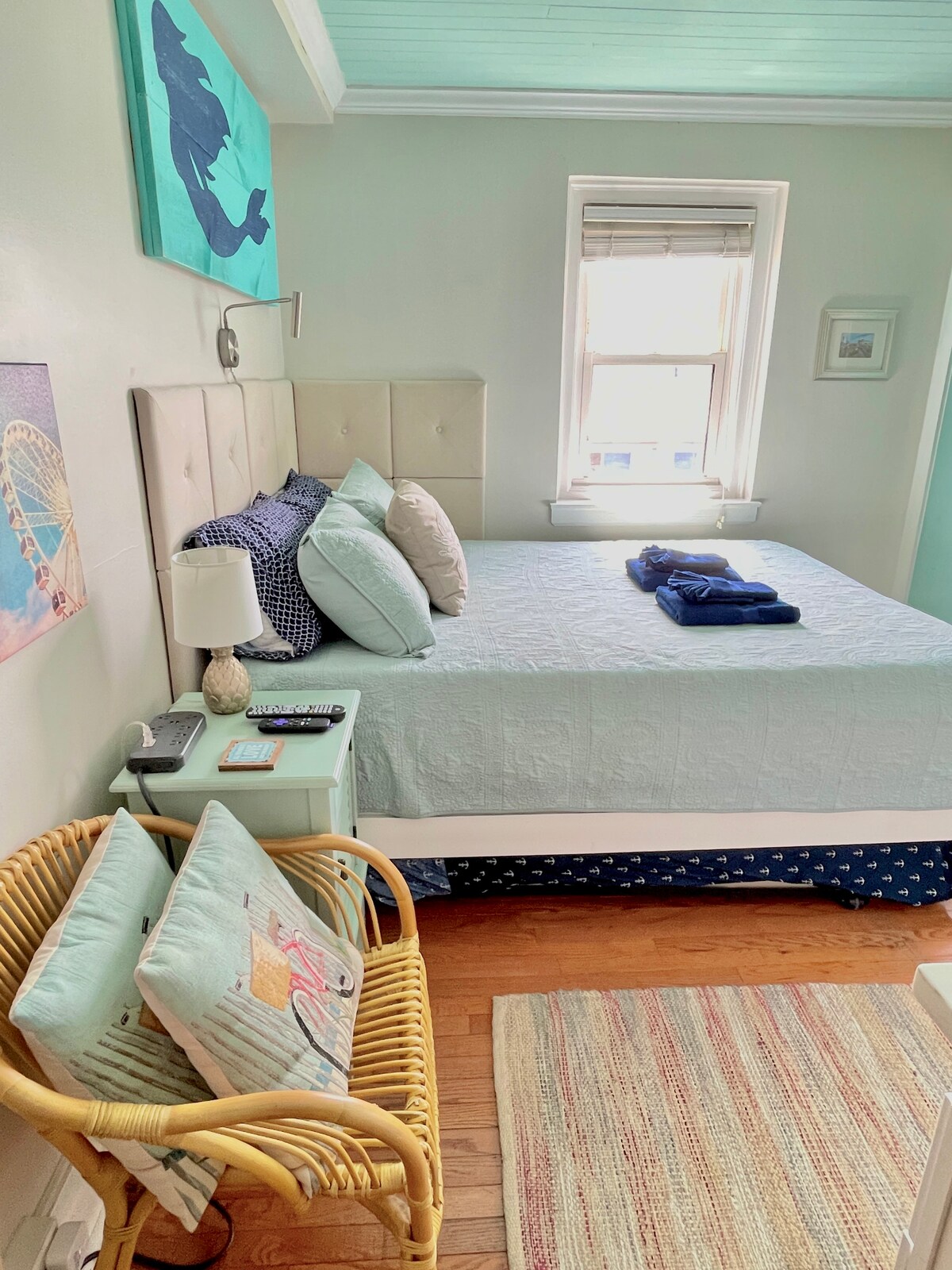 Welcome to the Beach Bungalow! I am so happy to share my hometown with all of you. Ocean City is filled with quaint coffee shops, boutiques, & beautiful beaches. The beach & boardwalk are steps from the unit. Less than a 5 minute walk! Comfortable space for a family of four or a couple looking for a weekend getaway! Would not recommend for more than two adults. A/C wall unit located in the bedroom. Please leave door open during the day for maximum airflow throughout the unit.