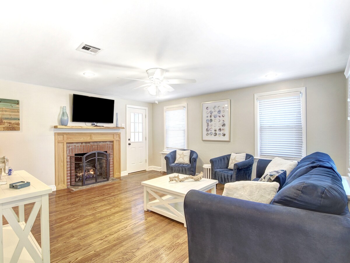 In our Family Style home, we offer 3 bedrooms to comfortably welcome 6 guests. This includes 1 Master Bedroom with a large flat screen smart TV along side 2 other spacious bedrooms with towels warmers in every room. There is an additional flat screen TV in one of the additional bedrooms. This home includes a fully equipped kitchen, 1.5 bathrooms, a working space island, BBQ grill, Patio set and a cozy front porch with 2 chairs and a love seat. *We include 5 beach passes with your booking*