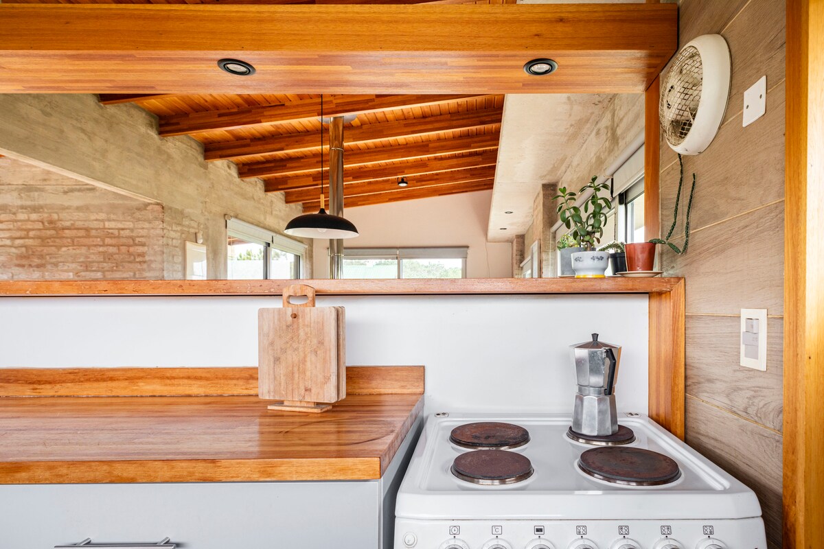 Cozy cabin in the woods of Punta Ballena. Ideal to get away and relax in a natural and very peaceful setting. Steps away from the Lussich Arboretum, ideal for hikes, rides, and enjoying a coffee with a delicious La Checa cake. Minutes from Solanas, Tío Tom, Las Grutas, and Chihuahua beaches. We have a set of sun loungers and a parasol with UV protection. In winter we'll wait for you with the fire lit. The house is fully furnished to make you feel at home.