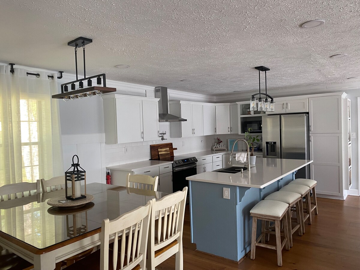 >>View our IG videos for more @anchorsaway_lakesinclair<< Renovated, spacious home w/ abundant outdoor space on deep waters of Lake Sinclair. 3 br, 2 ba + Queen pull out sofa comfortably sleeps 8. Enjoy the lake with our kayaks, paddle board, swim mat, fishing gear. Drop your boat in nearby Twin Bridges Marina & tie up at our dock. After water fun, soak in the hot tub, cook out on the grill, roast treats on the fire pit, play cornhole.