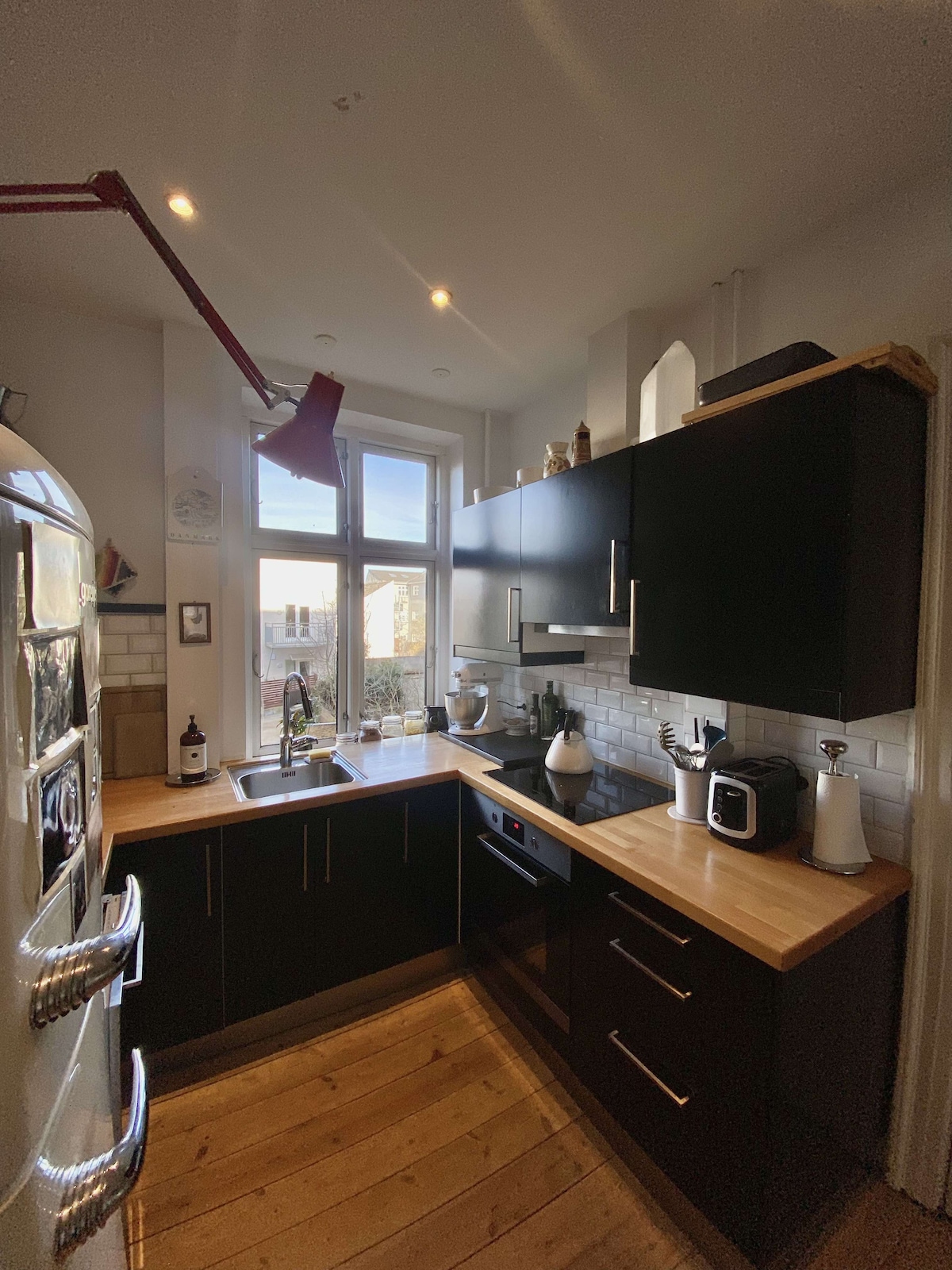 The home is a bright and inviting apartment located in a high basement with windows that provide plenty of daylight. The living room and bedroom are particularly bright and spacious and are connected. The kitchen and bathroom were renovated in November 2018 and appear modern and well-maintained. There is a storage room in the apartment that we use ourselves. However, we make sure to avoid it when there are guests. I emphasize that the apartment is always clean and presentable.
