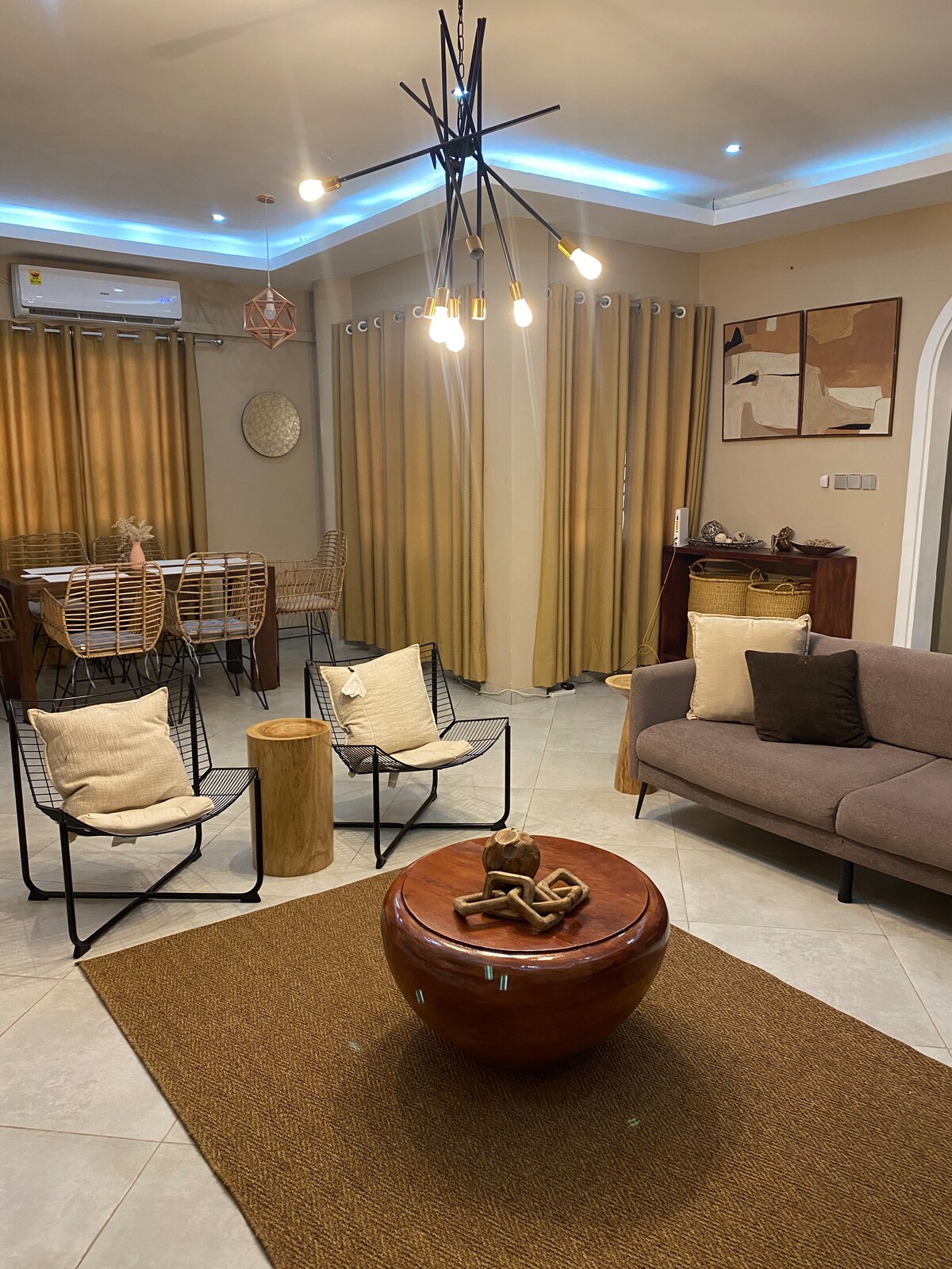A self-contained 2-bedroom apartment in Tantra Hills about 10mins drive from the Achimota mall. The apartment – inserted in a standalone unit on a larger property – is ideal for anyone seeking an undisturbed and private yet secured space. A spacious home with refined modern design, created for comfort and style, perfect for families and groups of friends. Each space is thoughtfully curated, with colors and design choices that enhance the living experience, making you feel at home right away.