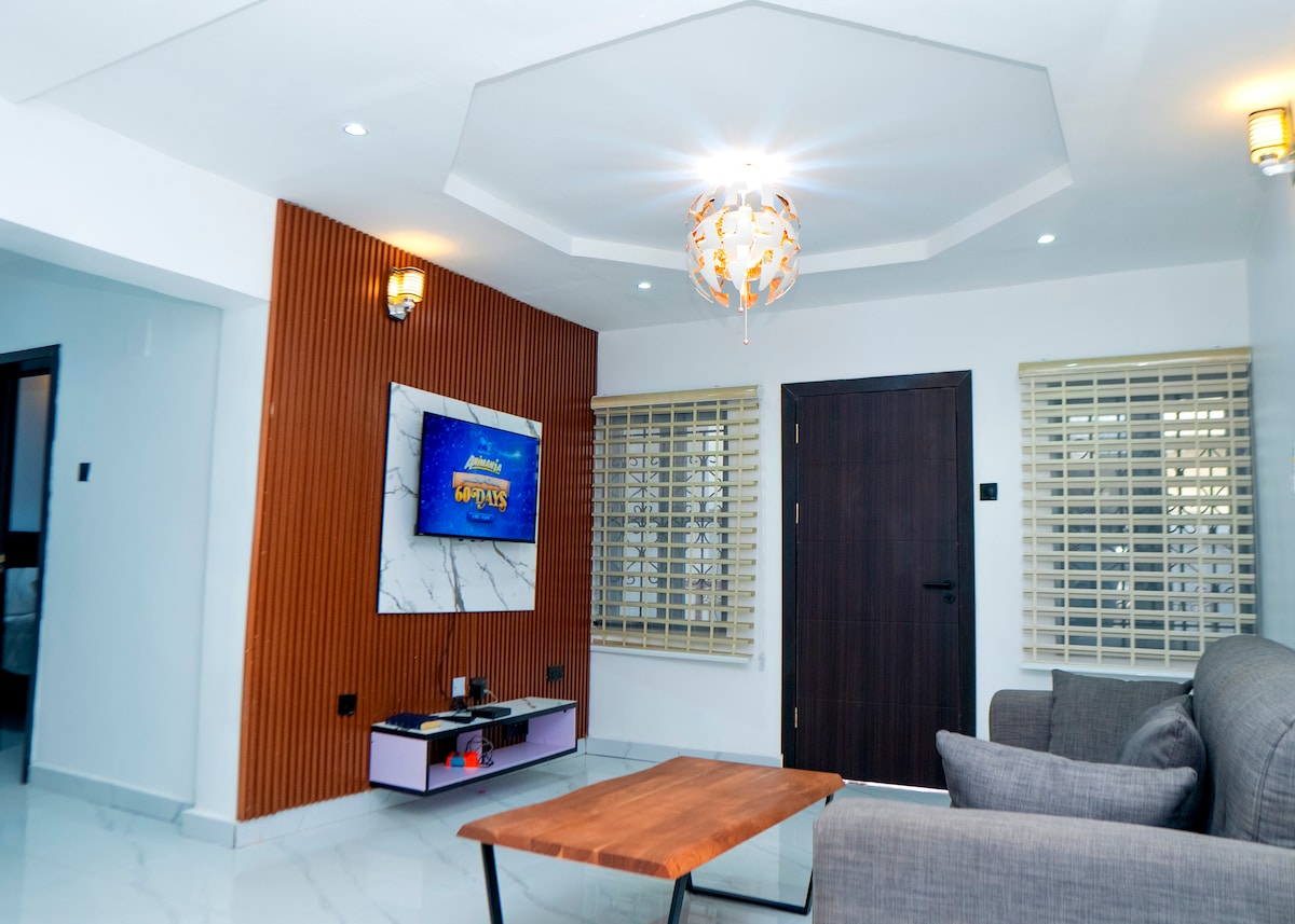 I am happy to host you , welcome ! This modern 3-bedroom apartment is your ideal retreat you would love to enjoy : - ACs in all rooms - Fast WiFi ,Cozy living area, - Cotton blinds for privacy - Well-equipped kitchen , - Soft bedding & ample storage ,Clean bathrooms with modern finishing . - Gated and secured compound - Solar light - Clean water Great for families, professionals & travelers. Comfort, style, and convenience await you
