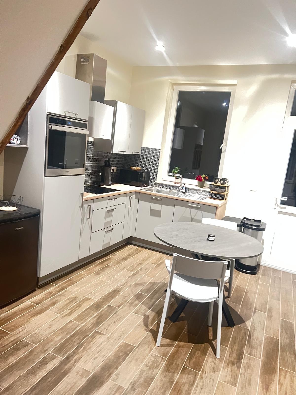 Nice cozy little apartment for 2 or 4 people in the heart of Auvelais. A bedroom for 2 people and a sofa bed for 2 people in the living room. Close to the train station and various shops. Michaël, your host, is the chef of the restaurant "Chez le Capitaine" at the bottom of the accommodation.