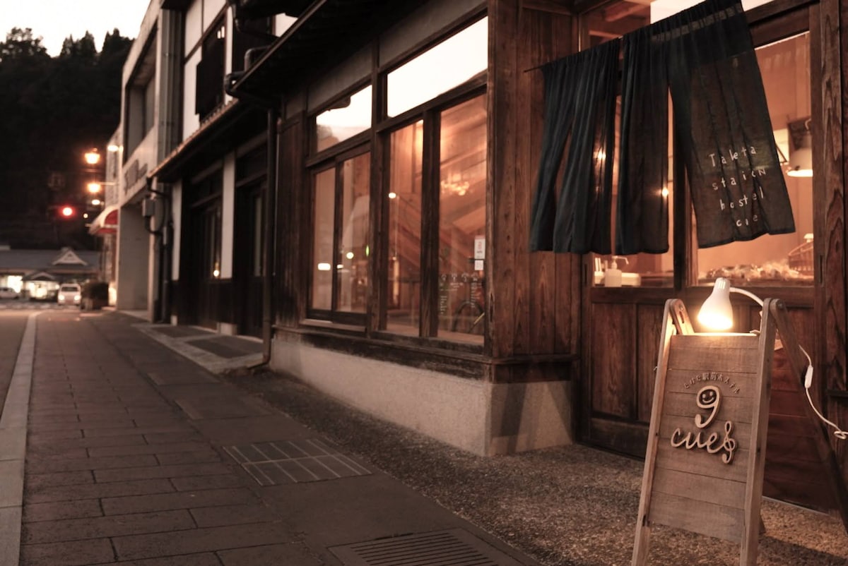 Located at the entrance of Oita Takeda Castle Town, Taketa Ekimae Hostel Cue is a renovated 90-year-old traditional house. There is nostalgia in the oldness, and our friendly staff welcome guests from all over the world. There are many attractive and delicious shops within walking distance, as well as historical sites. Drive 20 minutes to be healed by the great nature of Kuju Kogen, and you can also go to Nagayu Onsen, which is famous for its carbonated spring. Welcome to Takeda, where you can feel the beauty of the seasons and the kindness of everyday life in your body and mind. We are waiting for you at Taketa Ekimae Hostel cue so that you can have many opportunities!