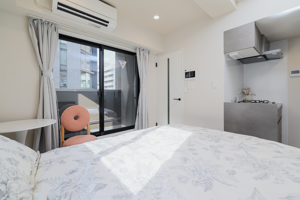 Walk to JR | 21㎡ Double Room w/ Bathtub & Kitchen