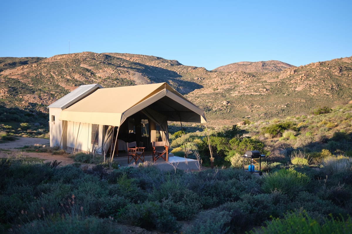 Brandrivier offers quiet, self-catering tent cabin accommodation nestled in the heartland of Namaqualand near Springbok. You can find peace and quiet on the farm. Our latest lodge tent is named Meerkat and you rent the whole self catering unit, hosting 2 people. We provide gate details so that you can come and go as you please, but we will always be available to assist with all your needs.