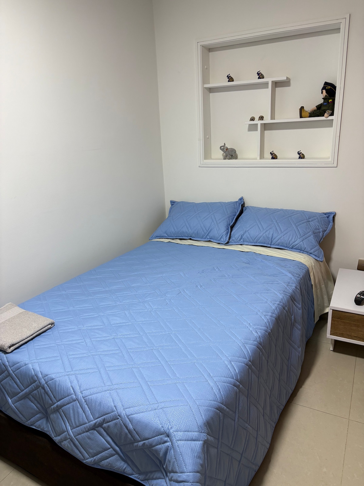 Start your day with an spectacular view of the eastern mountains. Enjoy the comfort and style of this 90sqm apartment, 2 bedroom with double size beds, smart tv, 2 bathrooms, heater device, living room, dinning room, kitchen, 2 spectacular balconies, 2 parking spots, security 24/7,gym, and a supermarket 24/7. The apartment is located close to the airport, 800 m away from Corferias, historical center, there are access ways to in and out of the apartment, it's a secure area, nice and well located