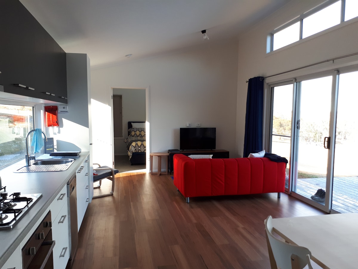 Kick back and relax in this secluded, stylish space. Check out from the rat race and into peace and luxury while enjoying the adventures the Snowy Mountains have to offer. Comfy couch, free Internet, premium bedding in a Queen bed, King Bed Extra bedding (Queen fold out couch + foam topper). Luxurious oversized shower to freshen up after a big day on the mountain or lake. Relax by the fire and enjoy the magnificent fully equipped kitchen. Jindabyne is 10 easy minutes away