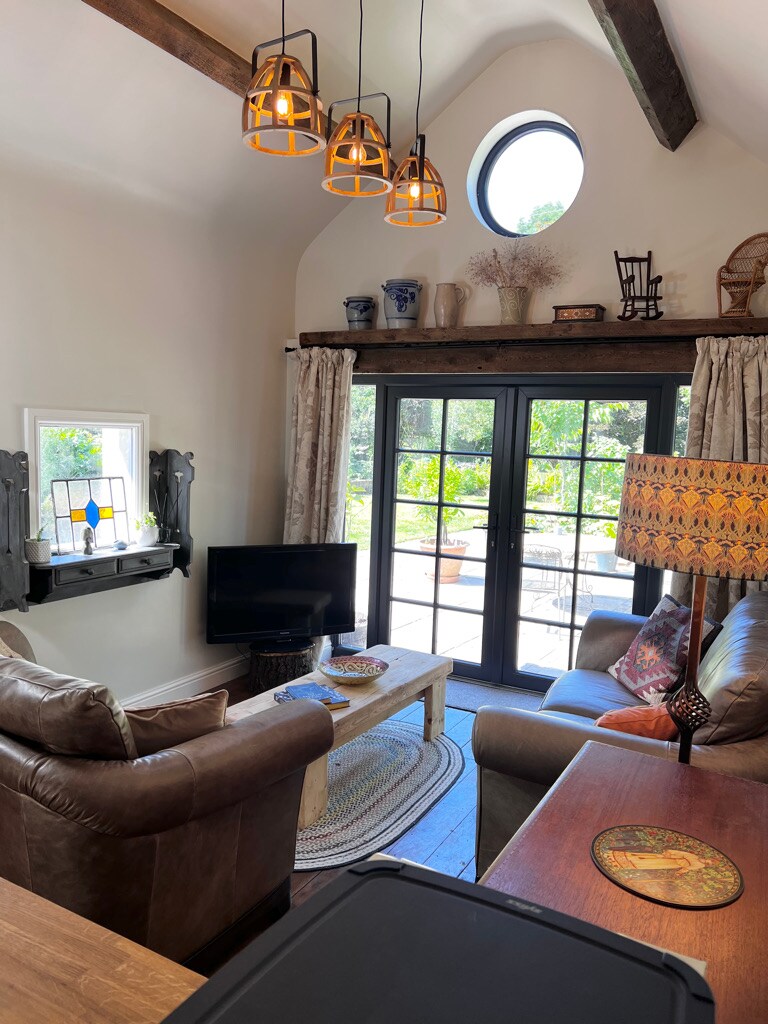 hi, here we have an outstanding 5*glamping hut; currently also available for those needing an isolation, or a private quiet work space ; very good wifi and desk??, purpose built and nestled in the corner of a quiet private field , with amazing views in to the sunset to the west, and panoramic from there , for those wanting a, private, quiet , on your own experience , except for the sun moon trees and grass , and for the lucky , rabbits, deer, foxes , owls , from a very quiet place...