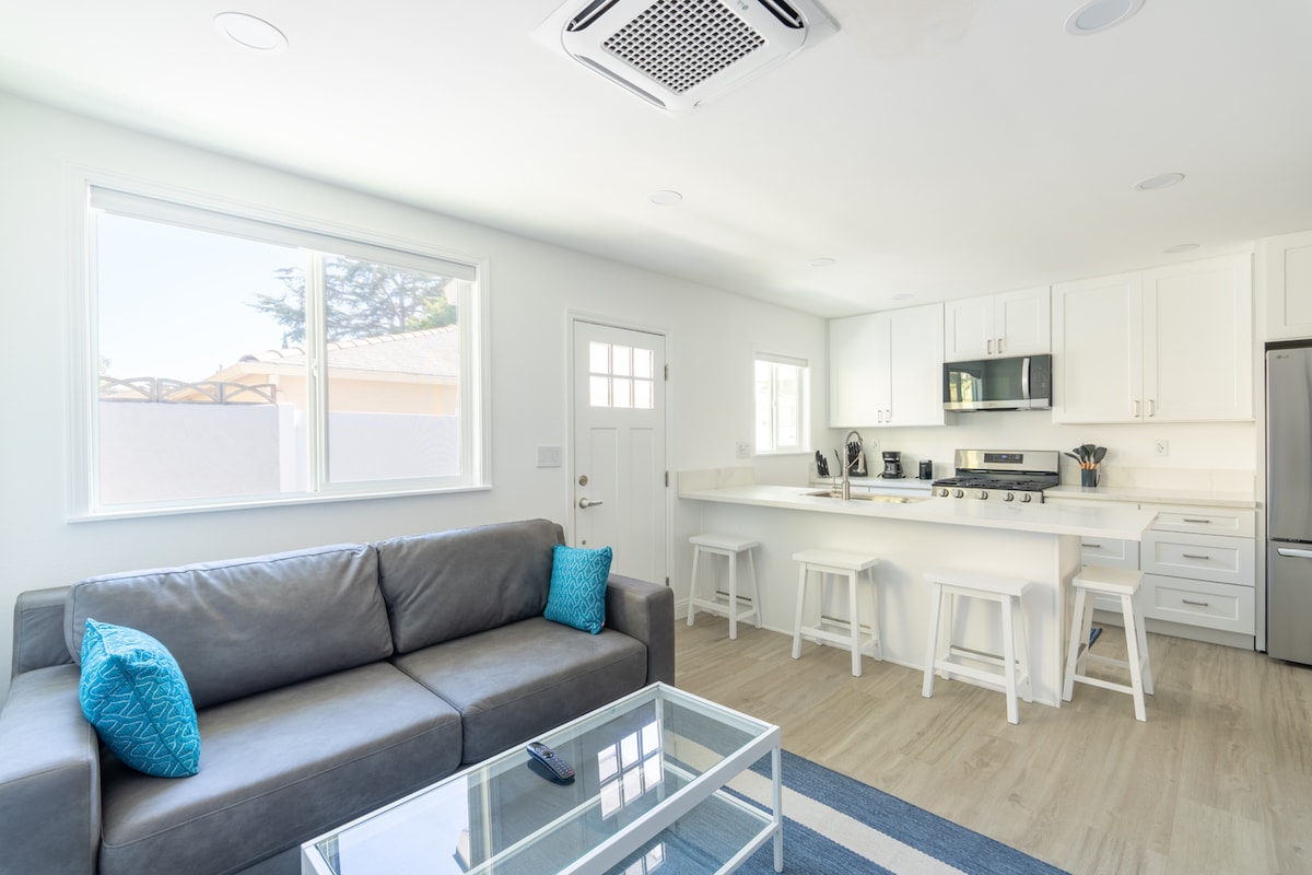 Modern, sleek fully equipped Bungalow with bay breezes and sunshine. Sterilized thoroughly for each stay. Cozy for a couple and comfortably sleeps 5 guests. Fully equipped kitchen. Outdoor and indoor dining spaces. Stunning, spotless bathroom. Washer & dryer in unit. Free and safe parking in front of house. A 10 minute walk to Mission Bay, beautiful hiking trails, family parks & playgrounds. Perfect Covid getaway! Brand new construction with lovely design. Welcome!