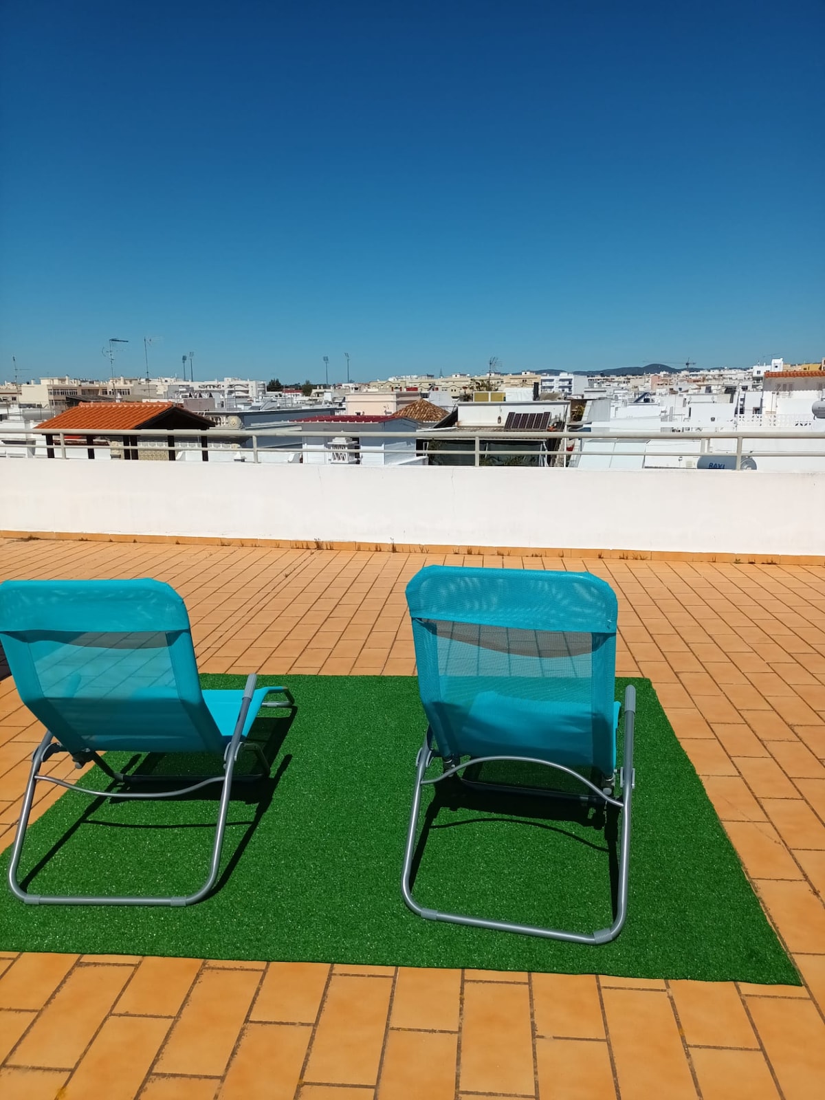 Sunny and well-equiped apartment in downtown Olhão. It's located in a quiet street, near by the main church, 5 minutes walking from the Fish Market and 10 from the Port (where you take the ferry to the islands). It has 1 room (with double bed), 1 spaceous living-room (with a confortable double sofa-bed), 1 bathroom and kitchen. It is in a second floor without a lif and has access to 2 terraces, one of them private, where you can enjoy Algarve marvellous sun and a typical view from the city.