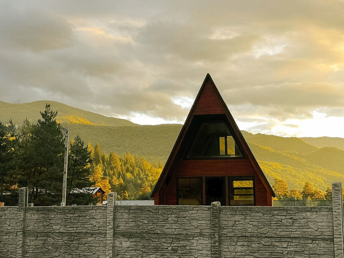 Dreamy, comfortable and lovely well-furnished cottage with a mezzanine surrounded by forest. A 2-minute drive from Oni, there is a resort area in the village of Tsmendauri. With air conditioning with hot water, heating, a refrigerator, a washing machine, Internet, TV, a large balcony a 700-square-meter yard. From the balcony you can directly see the beautiful panoramic views of the Shoda Mountains. It has a new stadium 50 meters behind. Surrounded by forest on all four sides with walking paths.