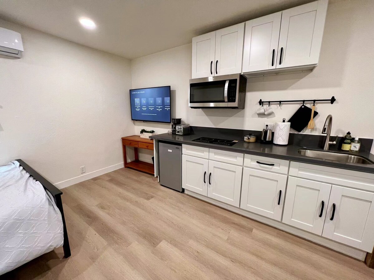 DESIGN-CLEAN-SAFTY New renovated Private entry Close to a park Bright space Nice designed Tiny home Memory foam mattress-Queen Well organized Clean Desk-work from home Laundry and dryer 2 in 1 machine w/ private bathroom and small kitchen Refrige and microwave Cookware and dish Soft water system Ceiling fan and individual air conditioner Best place for work and relaxation.