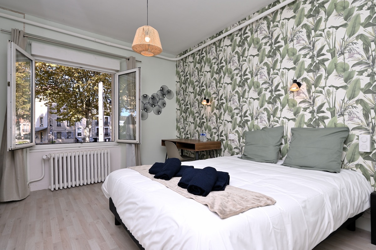 Newly restored 42 m2 independent accommodation comprising a large 13 m2 bedroom with a 160 bed and a wardrobe, an equipped kitchen open to the living room and a bathroom. A large bay window overlooking a private garden illuminates the living room. A sofa bed sleeps an additional 2 people.
