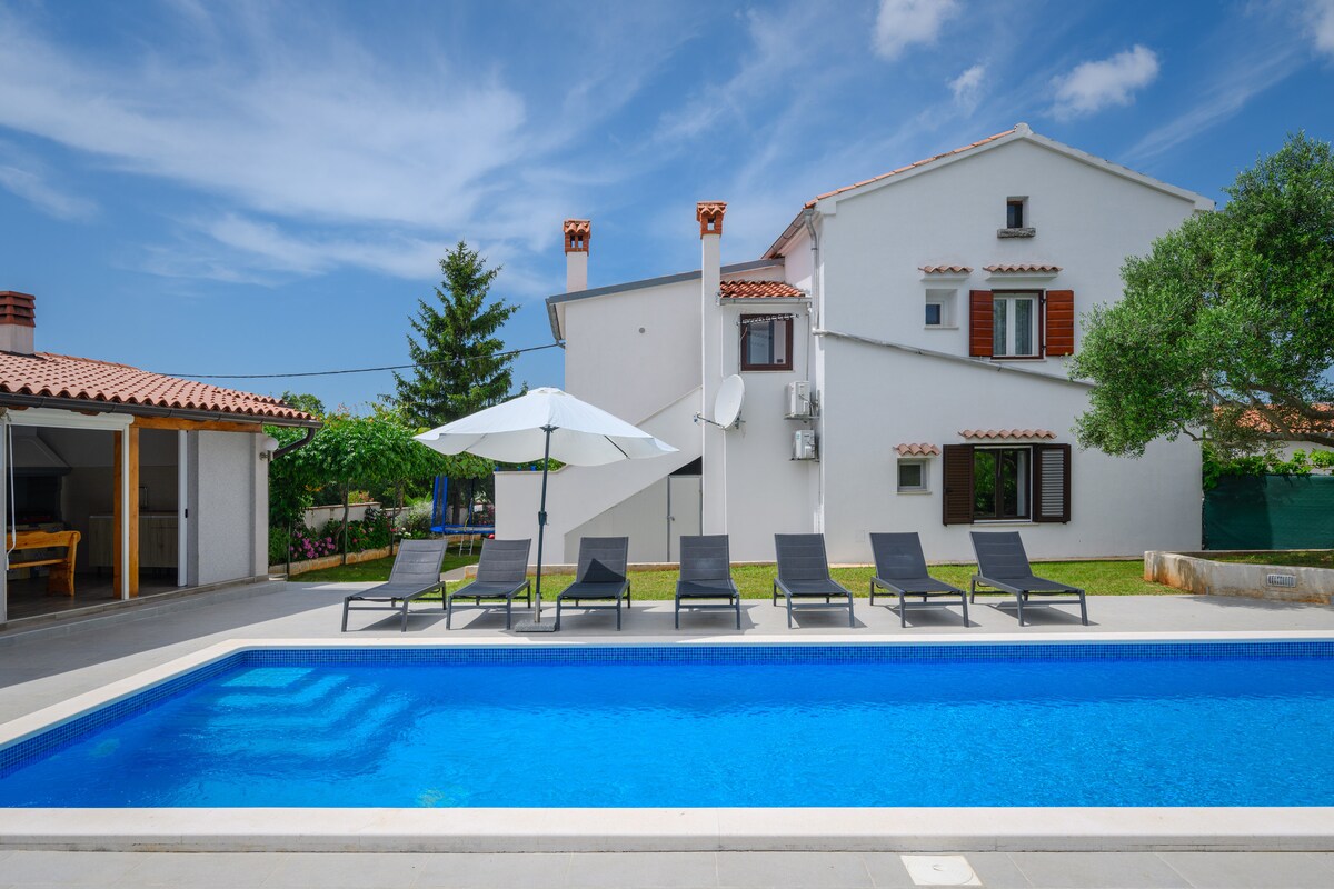 Discover the epitome of privacy, tranquility and relaxation in our new designer Villa Bella Nicole, nestled in the serene village of Bale, 10 km from Rovigno – Istria. Enjoy a private 10-meter heated pool. Nearby are grocery stores, restaurants, and a pharmacy. Pristine beaches are just 9 km away with free Camp Mon Perin guest cards and free parking 50 m from the beach. Free beach entrance.