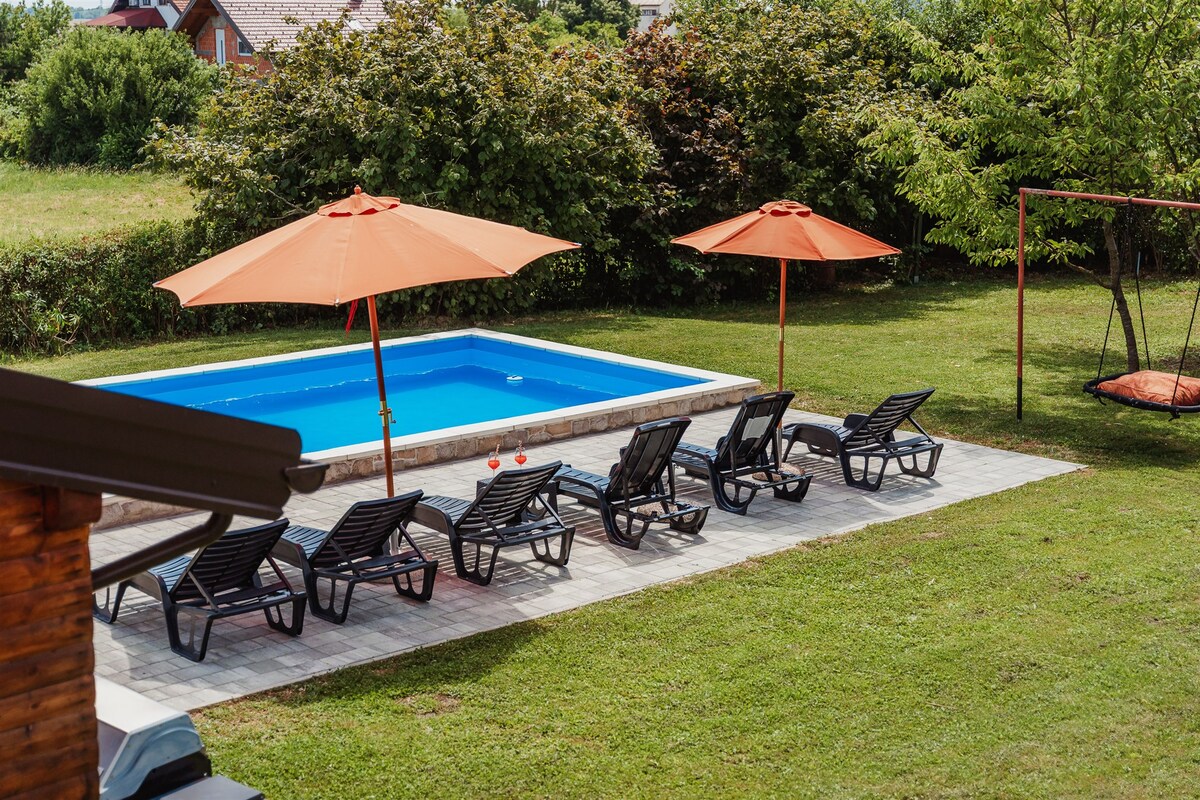 Smještena u mirnom okruženju nedaleko od Zagreba, naša kuća nudi savršen spoj opuštanja i zabave za cijelu obitelj. Uživajte u bazenu, prostranom dvorištu, spa zoni i brojnim sadržajima-od kutka za roštilj i opuštanje za odrasle, do prostora za igru i zabavu za djecu. Svaki gost može uživati u toploj i domaćoj atmosferi s prekrasnim pogledom i osjećati se kao kod kuće.