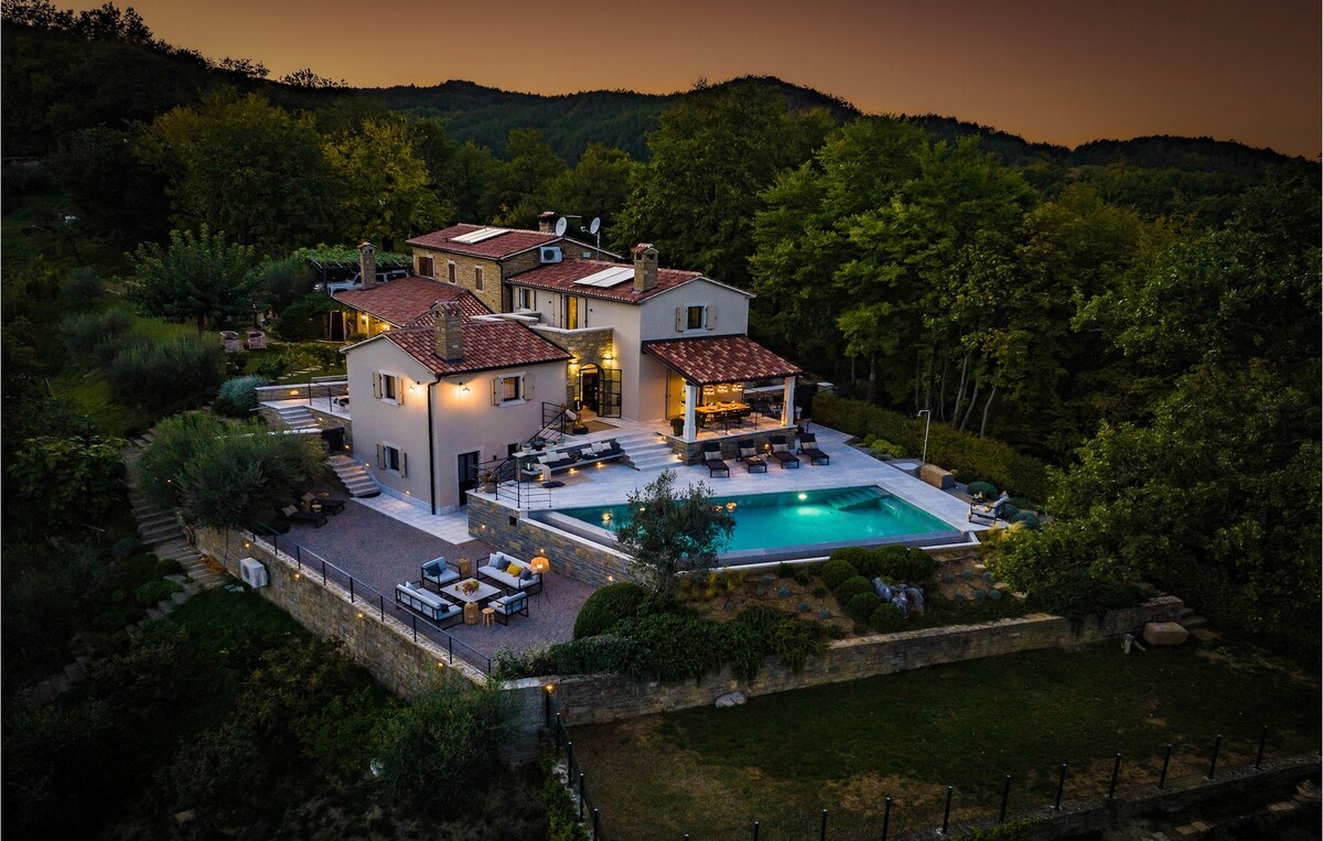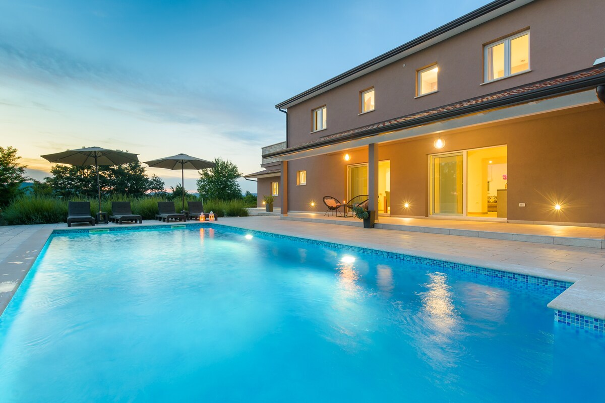 Villa Zamari is located in the heart of Istria, with a private pool, sauna, and numerous recreational facilities, making it ideal for a family holiday. The villa can accommodate up to 12 guests in 5 elegant bedrooms decorated with great attention to detail. On the ground floor there is a dining area with a fully equipped kitchen, and the comfortable bedrooms are on the first floor, each with its own private bathroom. Villa Zamari is just a few minutes from Pazin, a small historic town.