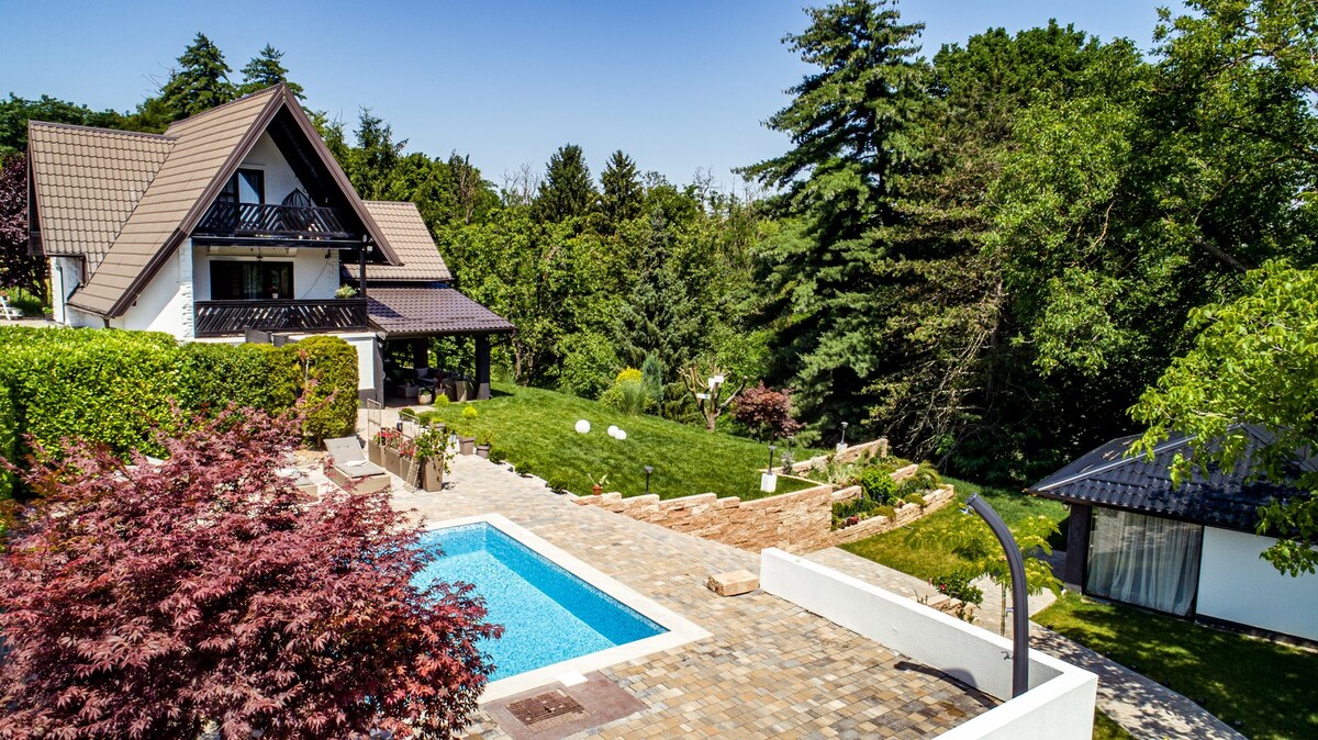 This holiday home is located on a hill not far from Varadin and is surrounded by a beautiful garden with a swimming pool overlooking the surrounding mountains and slopes covered with orchards and vineyards.