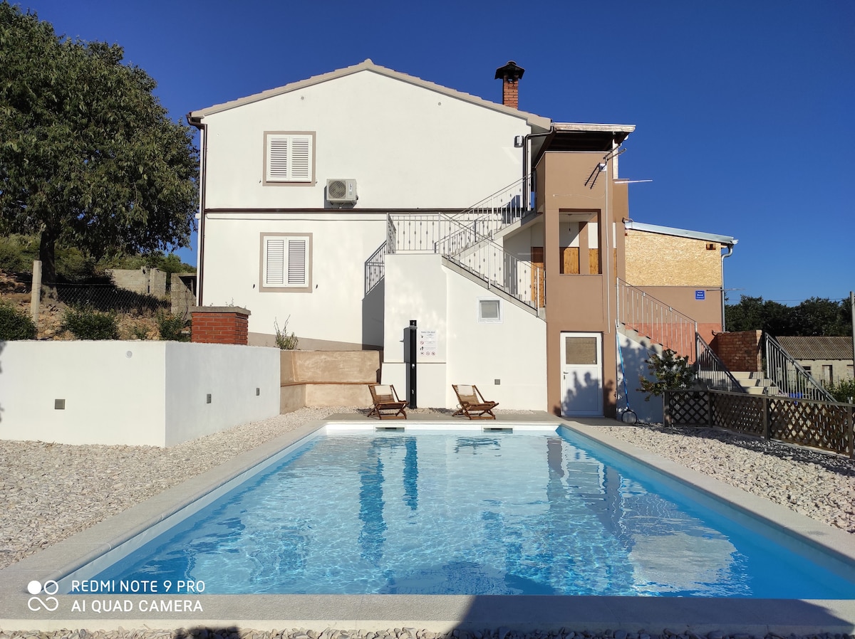 The house, located in the heart of the Dalmatian hinterland, close to the sea and Vransko jezero Nature Park, is the perfect choice for a relaxing holiday with family or friends. Enjoy the private pool, the large fenced garden with a barbecue, and the gazebo for outdoor dining, while children can play safely. Start your day with coffee on the terrace, spend it by the pool, and end the evening in the peace and sounds of nature.