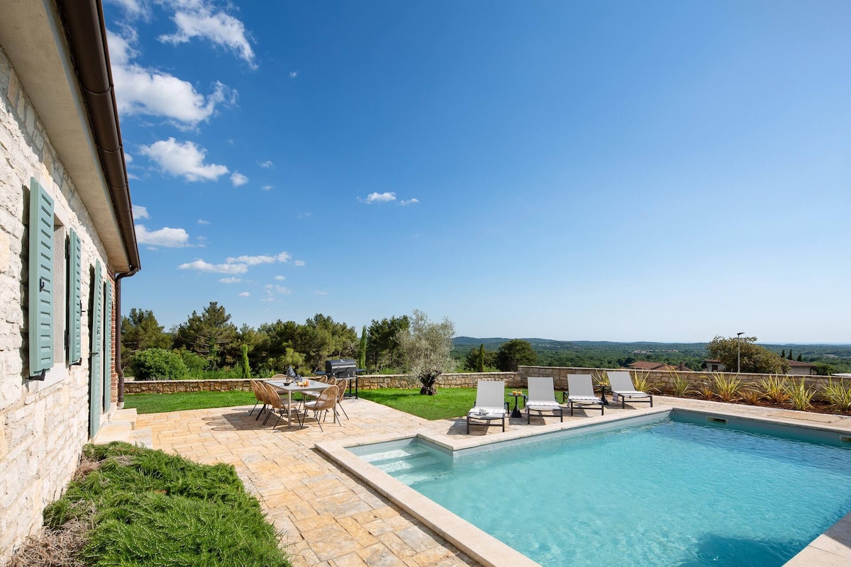 NEW FURNITURE 2025 Three bedroom Villa Kontešići 12 ★Unique amenities★ ✓ Private Swimming pool ✓ BBQ Area ✓ Fire Place ✓ Recently refurbrished ✓ Outdoor table ✓ Fully air-conditioned ✓ Equipped kitchen ✓ Heated during the winter ✓ Smart TV ★ Location ★ ✓ Beach - 15 minutes by car ✓ Supermarket - 15 minutes by car ✓ Aquapark - 15 minutes by car ✓ Traditional Istrian Restaurant •Konoba Gradina• 2 minutes by car or 7 min walk, 4.8★ rating on Google.