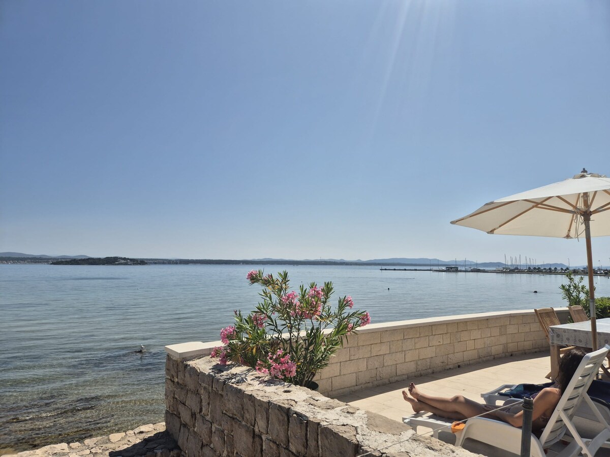Ovaj jedinstveni smještaj nalazi se u blizini svih zanimljivosti, sa prozora se gleda na prekrasni pašmanski kanal,kristalno čisto more, blizina plaže, restorana, barova, kulturnih znamenitosti, to sve će učiniti Vaš odmor nezaboravnim.Svako jutro će Vas buditi miris mora i krik galebova .