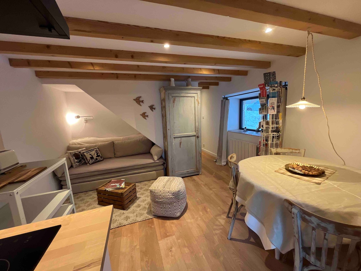 MOUNTAIN ATMOSPHERE Chalet spirit for this charming apartment in a village house, where stone and wood offer a warm, cozy and comfortable atmosphere. Apartment not accessible to people with reduced mobility (upstairs apartment without elevator). Apartment offered without sheets and towels, rental possible on site for €20/person. Extra cleaning fee on request: €60