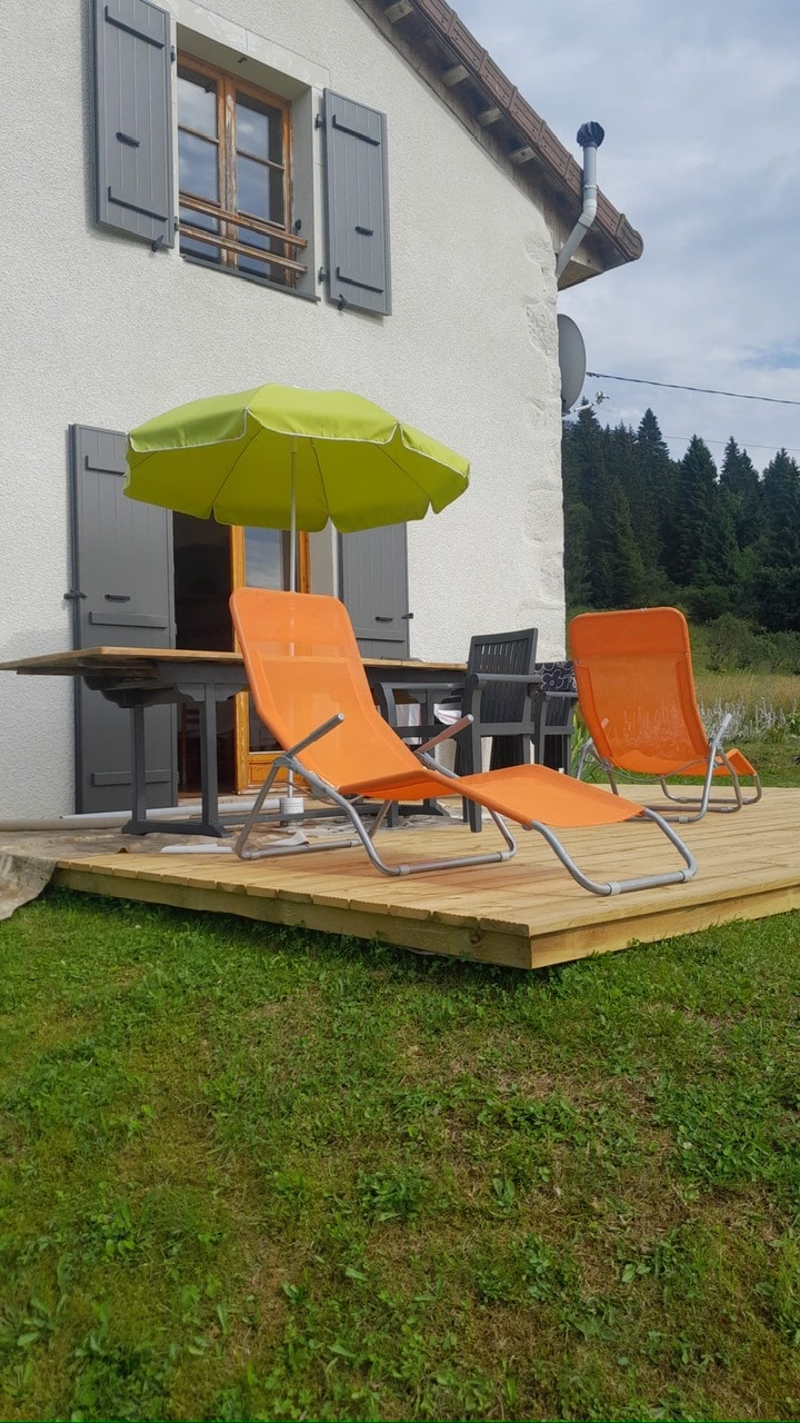 Gite Classified 3 stars. In the heart of the Haut Jura Natural Park at 1000 m altitude, 40 m2 cottage on the ground floor of the owners' house with independent entrance and terrace, - Ski resort (alpine, cross-country and snowshoeing) 2 km away, passage of the Transjurassienne in the town and sled dogs nearby - Hiking (Cascades du Hérisson...), cycling (road and mountain biking), lake region 15 minutes away and swimming pool 5 minutes away. - Les Rousses ski resort 15 minutes away - Switzerland 15 minutes away - Shops 5 km away
