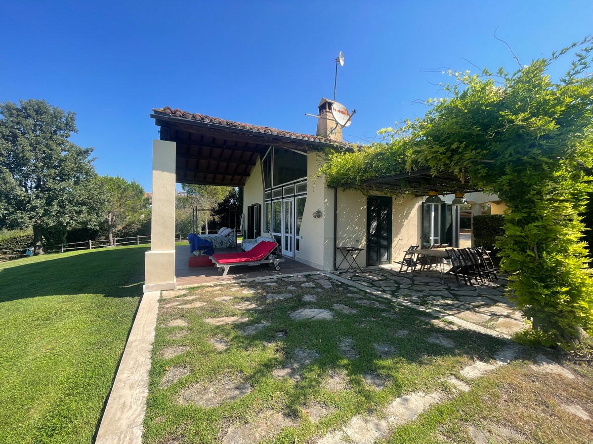 Villa in pietra con particolari rifiniture architettoniche immersa in un bosco di castagni. Un grande giardino, in parte pavimentato a pietra, correda la proprietà dal quale si può ammirare un panorama meraviglioso della maremma toscana. Immersi nella natura si nota da una parte il mare con il golfo di Follonica, l'isola d'Elba e la Corsica, dall'altra l'isola del Giglio. E' possibile fare lunghe passeggiate nella natura o raggiungere località balneari o città d'arte.